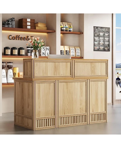 Computer Desk 55" with Power Outlet and Storage Shelves