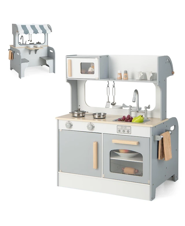 Costway 2 in 1 Kids Play Kitchen & Restaurant Double-Sided Pretend Playset with Canopy