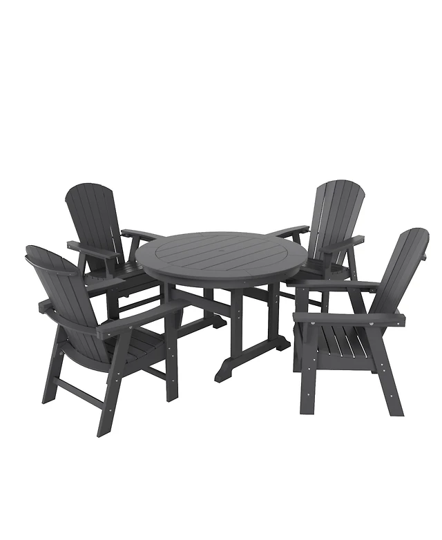 WestinTrends 5 Piece Outdoor Patio Dining Round Table and Curved Back Armchair Set