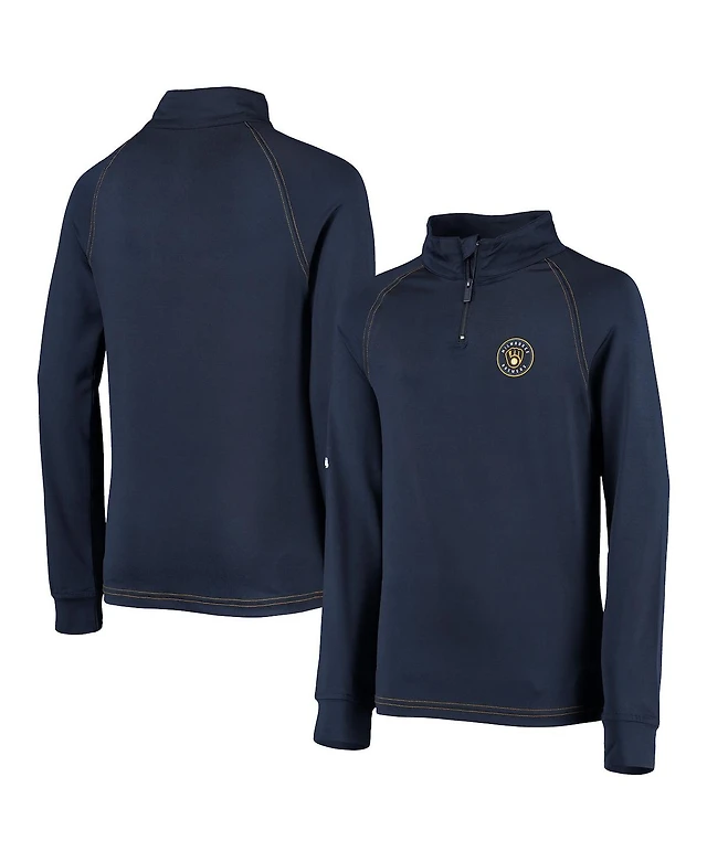 Big Boys Stitches Navy Milwaukee Brewers Raglan Quarter-Zip Jacket