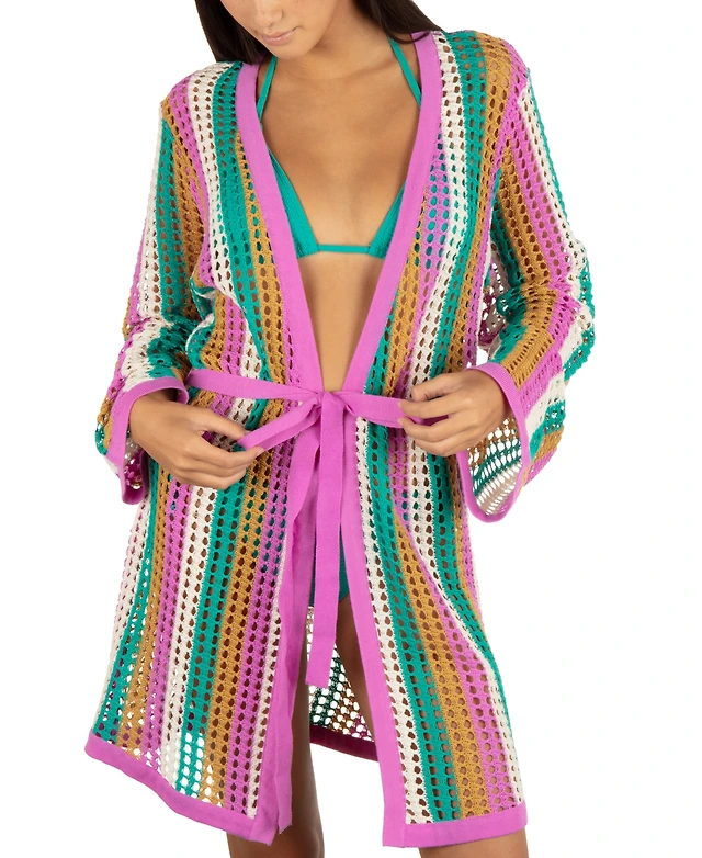 Hurley Juniors' Striped Crochet Robe Cover-Up