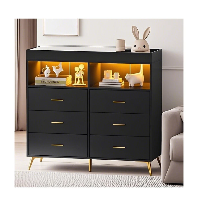 gaomon Modern 6 Drawer Wide Dresser Organizer for Bedroom, Wooden Storage Chest for Home and Entryway