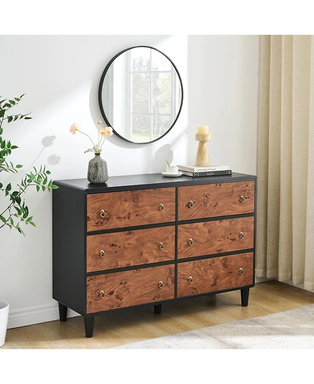 Slickblue Farmhouse Contemporary 6-Drawer Double Dresser for Bedroom Storage and Rustic Style