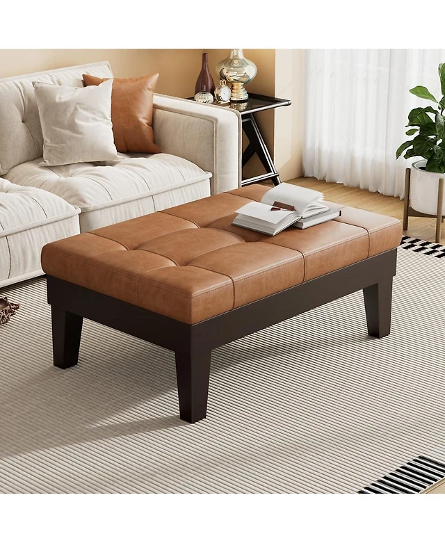 Upholstered Ottoman with Drawer and Tapered Legs Modern Rectangular Storage Bench for Living Room or Bedroom Coffee Table Alternative-The Pop Home