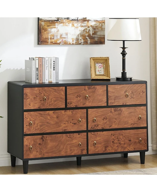 gaomon Modern 7 Drawer Dresser for Bedroom, Chest of Drawers for Closet with Deep Drawers and Wide Top, Long Wooden Dresser for Living Room