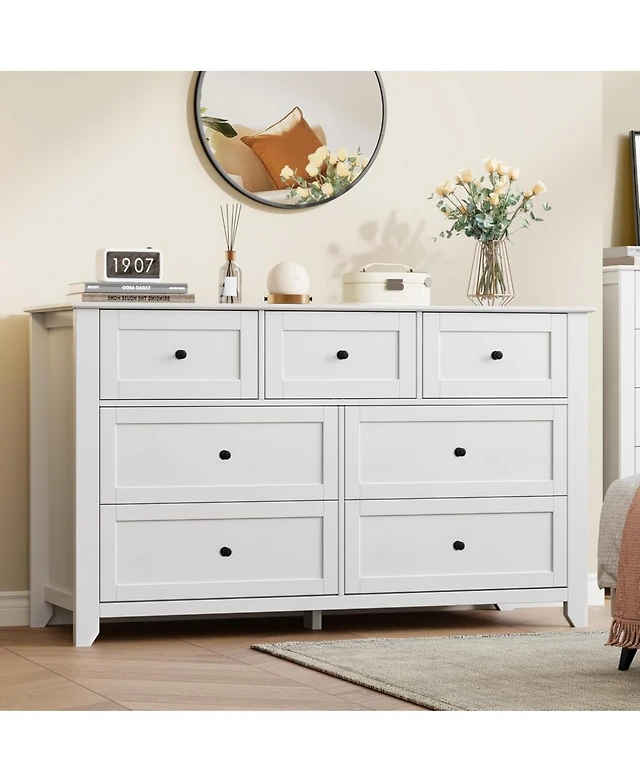 gaomon Fluted 8-Drawer Dresser for Bedroom, 55" Wide Modern Minimalist Chest of Wooden Drawers,Wide Clothes Storage Organizer