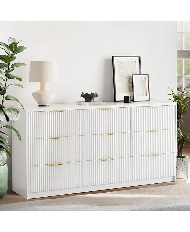 gaomon Fluted 6-Drawer Dresser for Bedroom, 47.4" Wide Wooden Chest with Large Storage & Tv Stand Use, White