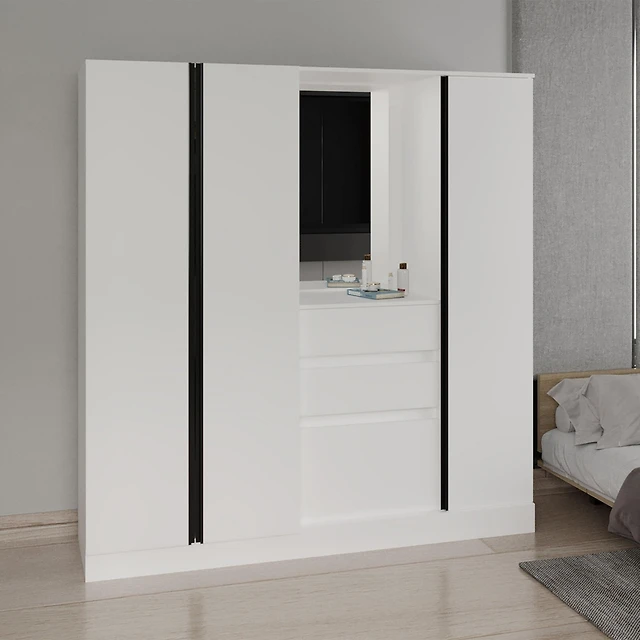 Famapy White Wood 2-Door Armoires with Hanging Rod,3-Drawers,Adjustable Shelves
