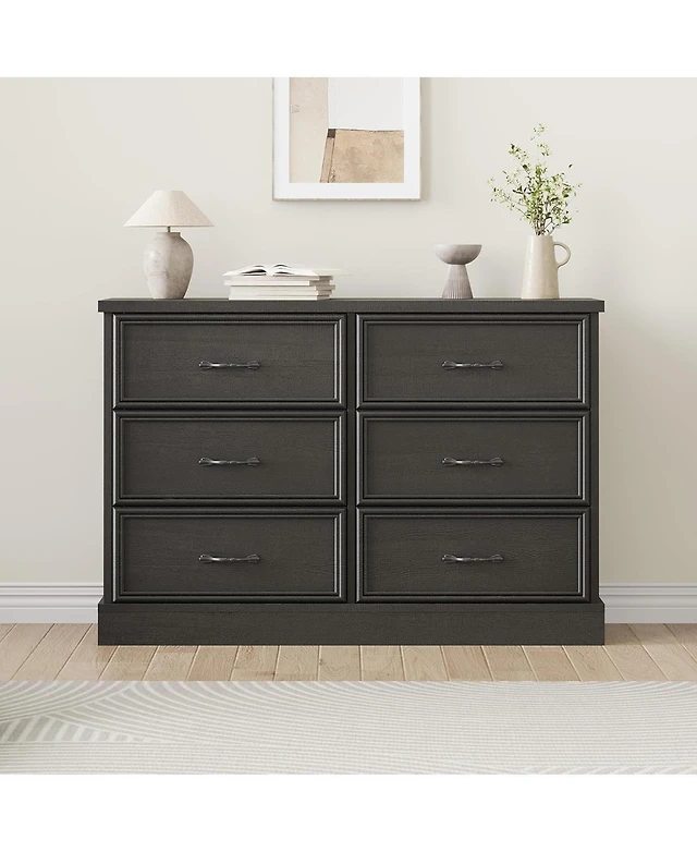 6 Drawer Dresser Black Wood Dresser with Deep Drawers Double Dresser for Bedroom