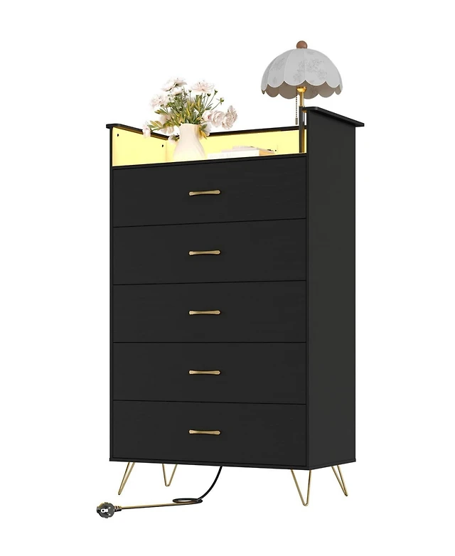 gaomon 5-Drawer Tall Dresser for Bedroom, Wooden Storage Chest with Deep Drawers and Metal Knobs for Entryway, Hallway