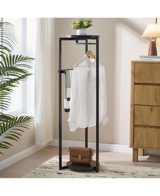 Gouun Corner Garment Rack with Open Shelves 7 Hooks Shoe Bench