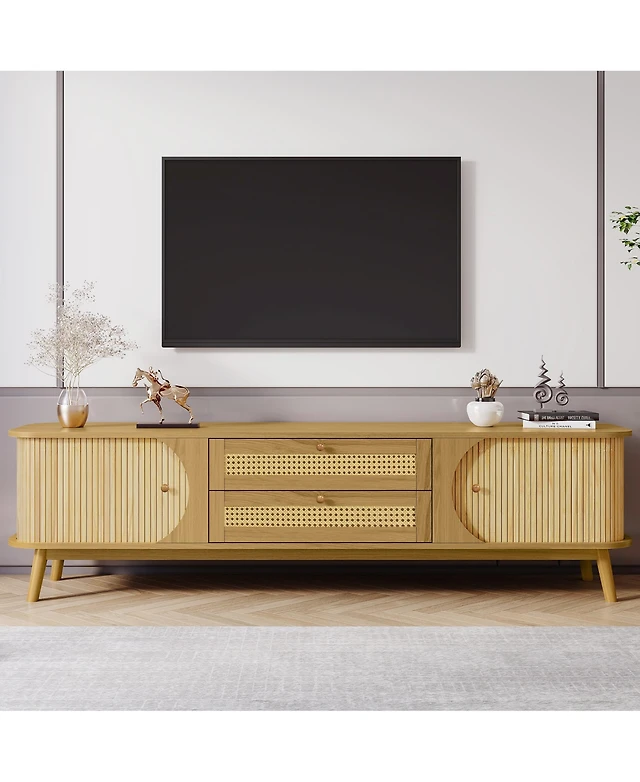 sumyeg 78" Modern Tv Stand for 90" TVs, Entertainment Center with 6 Cabinets & 2 Open Shelves