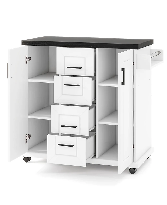 Sugift Rolling Kitchen Island Cart with Storage Cabinets and Shelves