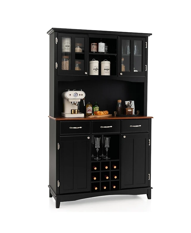 gaomon Modern Wine Bar Cabinets with Storage,68" Buffet Hutch Cabinet with Wine Glass Rack&Sliding Barn Door,Large Coffee Bar Sideboard Cabinet for Li