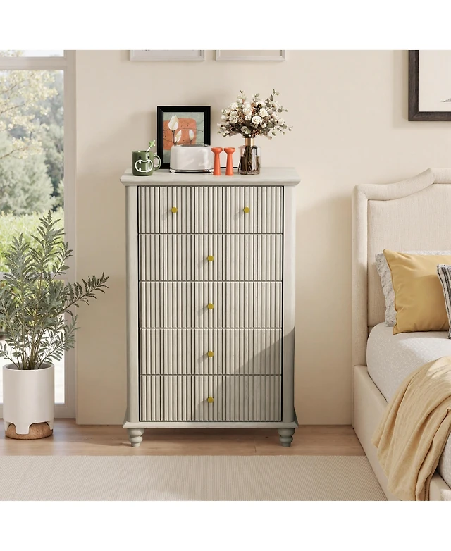 gaomon 5-Drawer Engineered Wood Waterproof Top, Anti-Tip, Lacquered Storage Chest Farmhouse Dresser