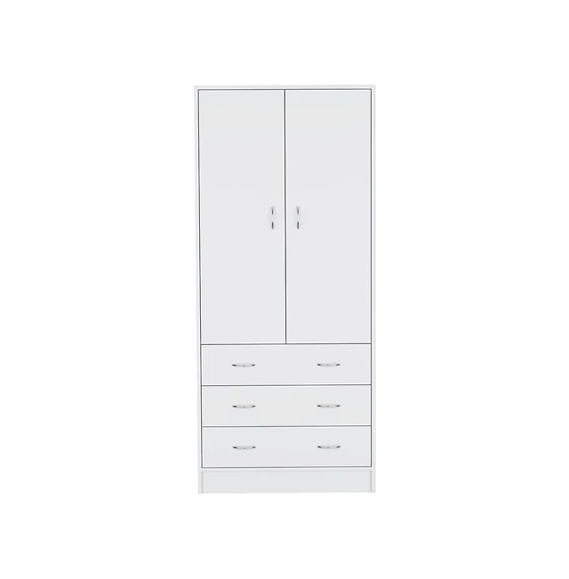 flynama Armoire with Two Interior Shelves Metal Rod and Double Door Bedroom Storage Organizer