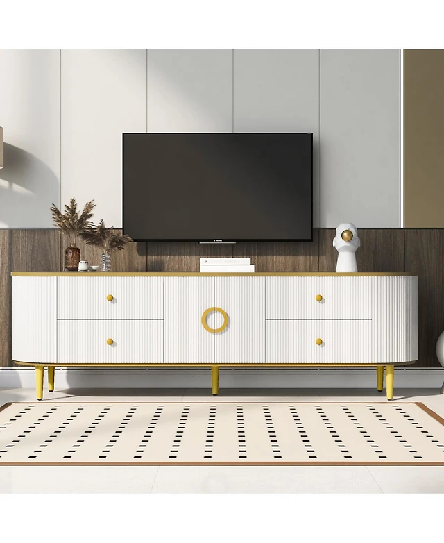 Black four-door Tv stand, media console with movable shelves, multi-purpose entertainment center