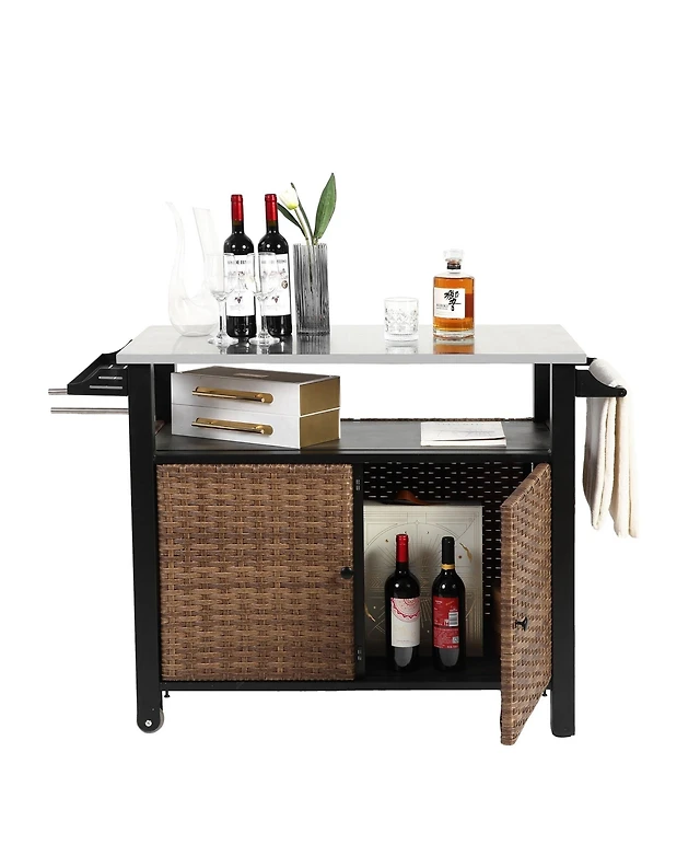 Halifax North America White Kitchen Cart: Stainless Top, Drawer, Towel/Spice Rack, Wheeled