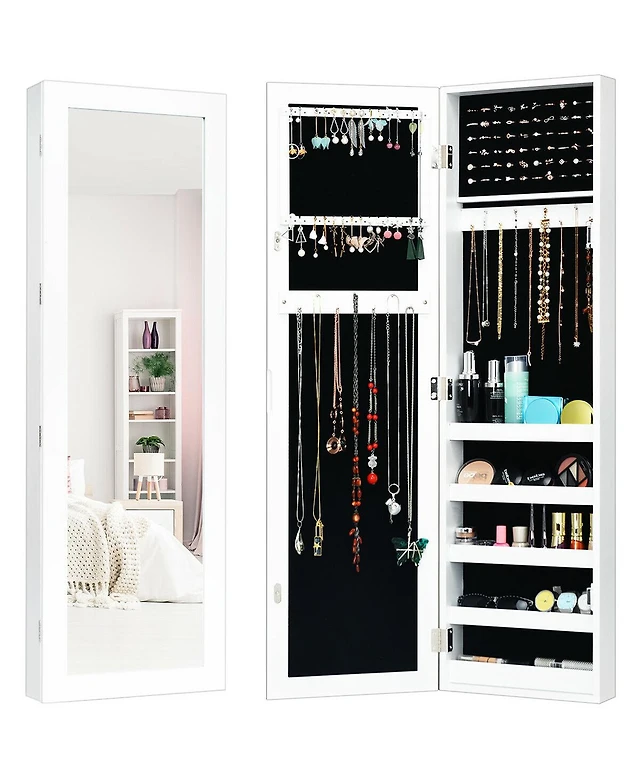 Sugift Lockable Wall Door Mounted Mirror Jewelry Cabinet with Led Lights