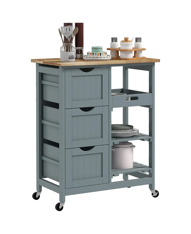 Costway Rolling Kitchen Island Cart with Drop Leaf Trash Can Cabinet