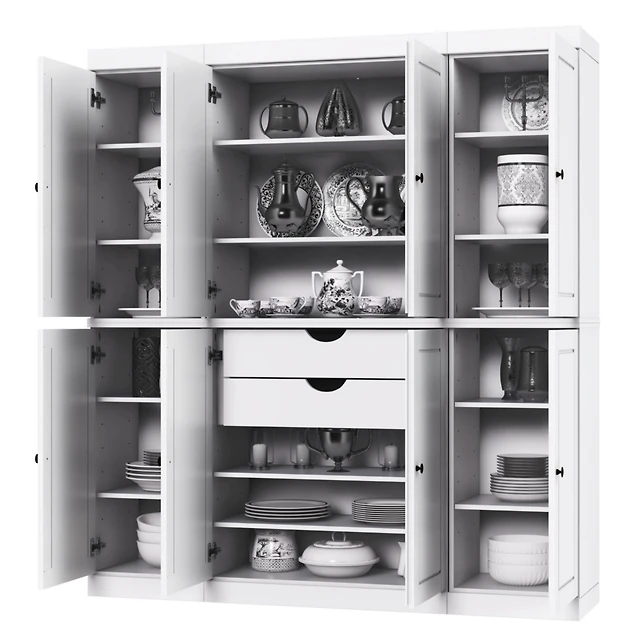 Gouun Tall Kitchen Pantry Cabinet with Dual Tempered Glass Doors and Shelves