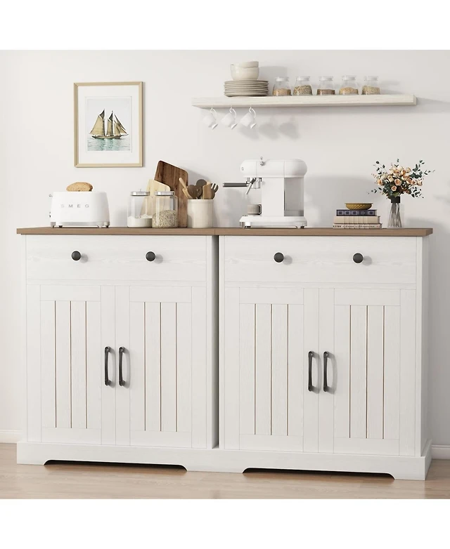 gaomon 61" Mid Century Sideboard Buffet Cabinet with Undulating Groove Design, Large Storage Cabinet with 3 Drawers, 2 Push-to-Open Doors