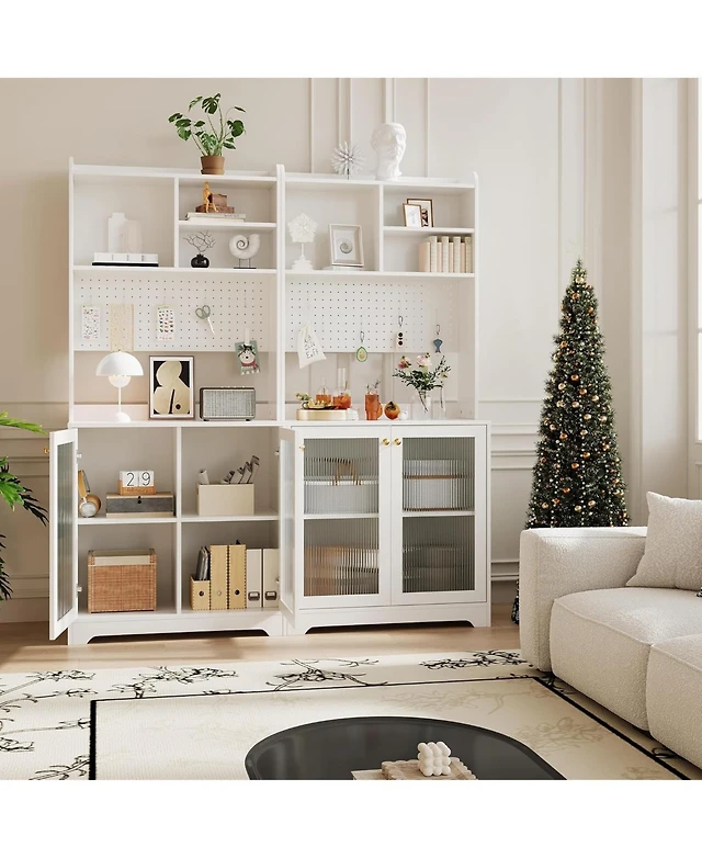 gaomon 72" Pure White Farmhouse Bar Cabinet with Sliding Barn Door, Kitchen Buffet with Hutch, 3 Drawers, Wine & Glasses Rack