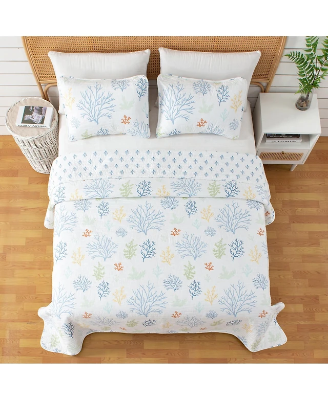 Linery & Co. Pastel Coral Pattern Microfiber Quilt Set With Shams