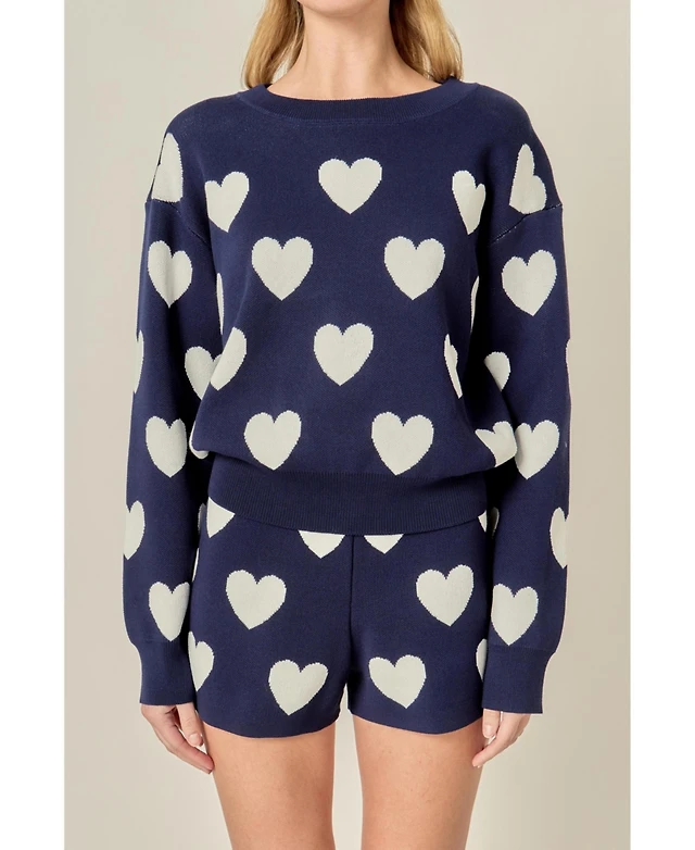 English Factory Women's Diamond Heart Pattern Knit Cardigan