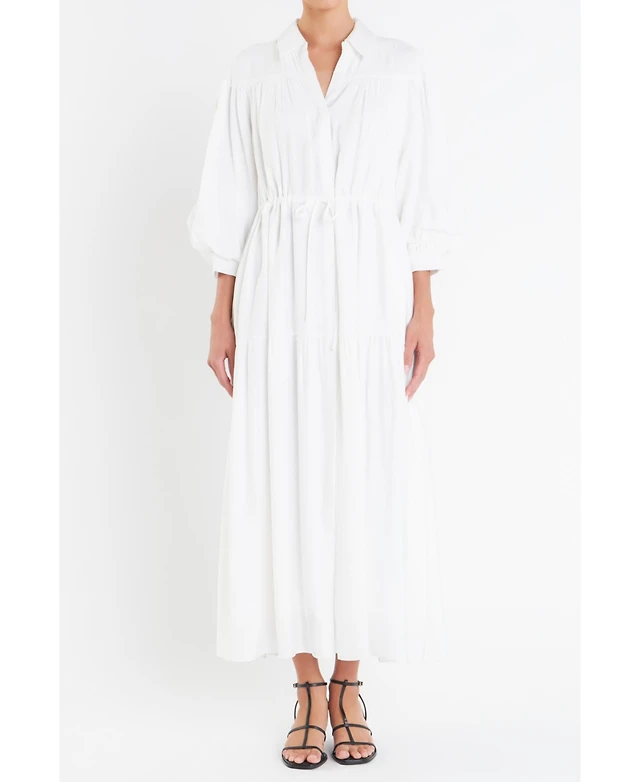 English Factory Women's Deep V-neck Tiered Maxi Dress