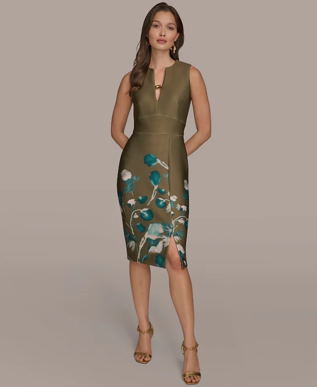 Donna Karan New York Women's Scuba Floral-Print Asymmetrical-Neck Sheath Dress