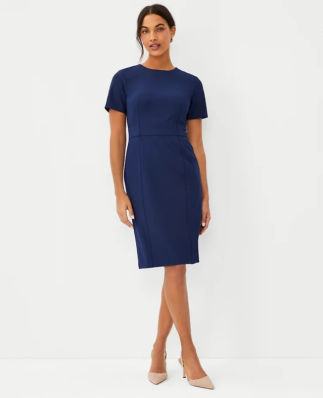 Dkny Women's Short Sleeve Scuba Crepe Sheath Knee-length Dress