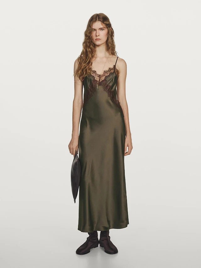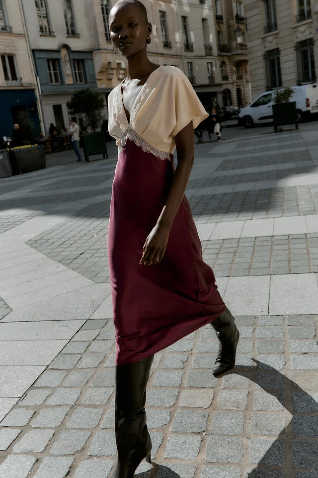 Lace Insert Midi Dress