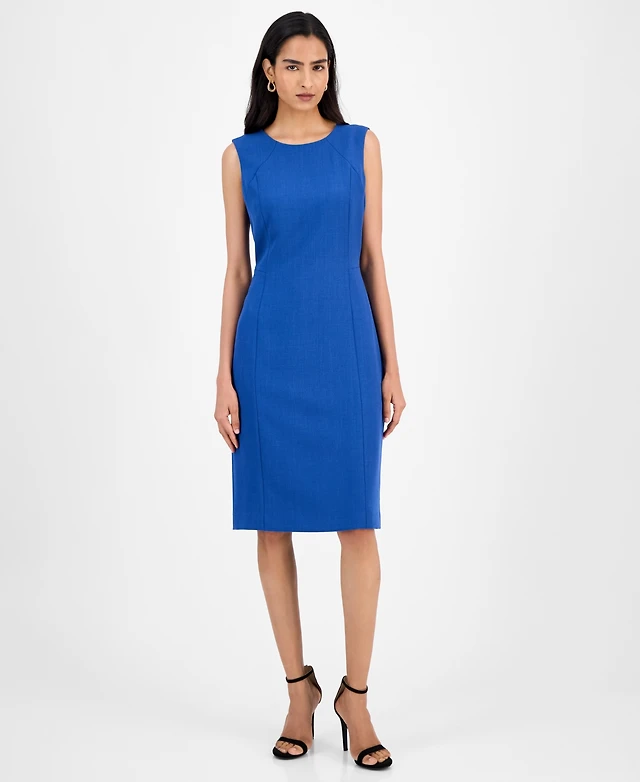 Kasper Crepe Sleeveless Round-Neck Sheath Dress, Regular & Petite
