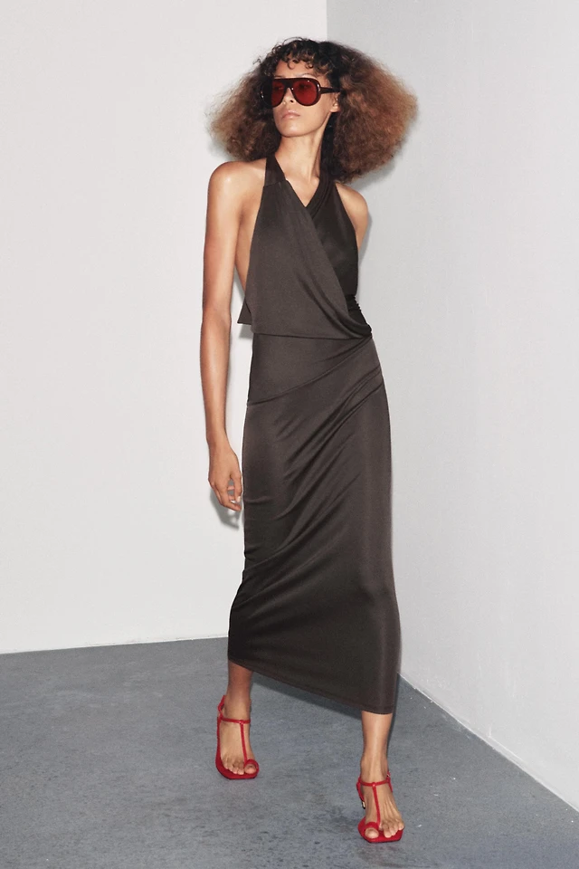 DRAPED VELVET MIDI DRESS