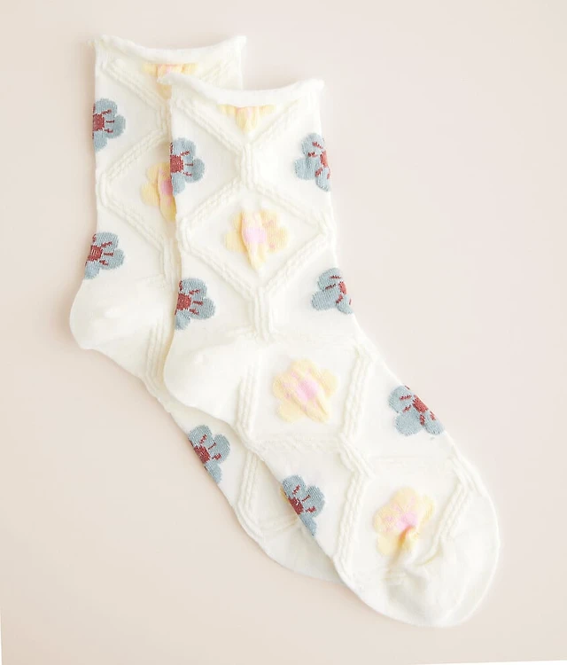 Embroidered Flower Crew Socks