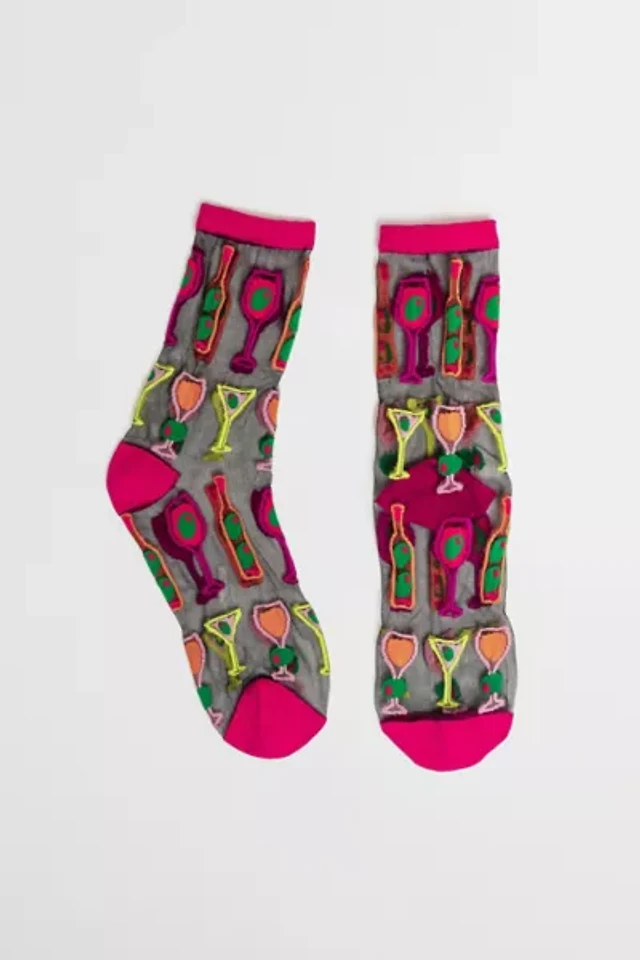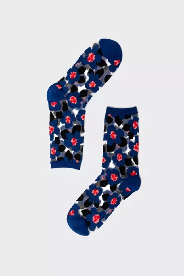 Sock Candy Floral Bow Ruffle Black Sheer Sock