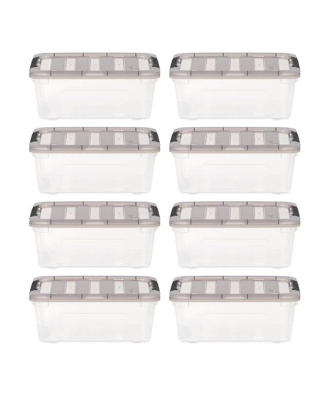 Iris Usa 13 Quart Stack & Pull Clear storage Box, Gray, 8 Pack