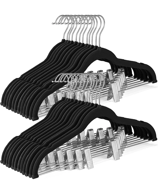 Velvet Skirt & Pant Hangers with Adjustable Clips Black 24 Pack