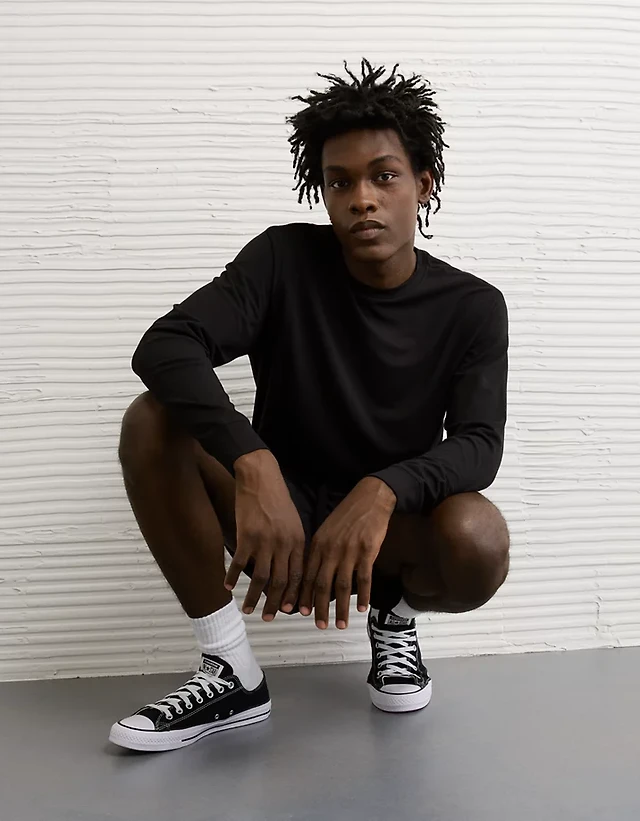 AE Denim Collared Puff Sleeve Tie Front Shirt