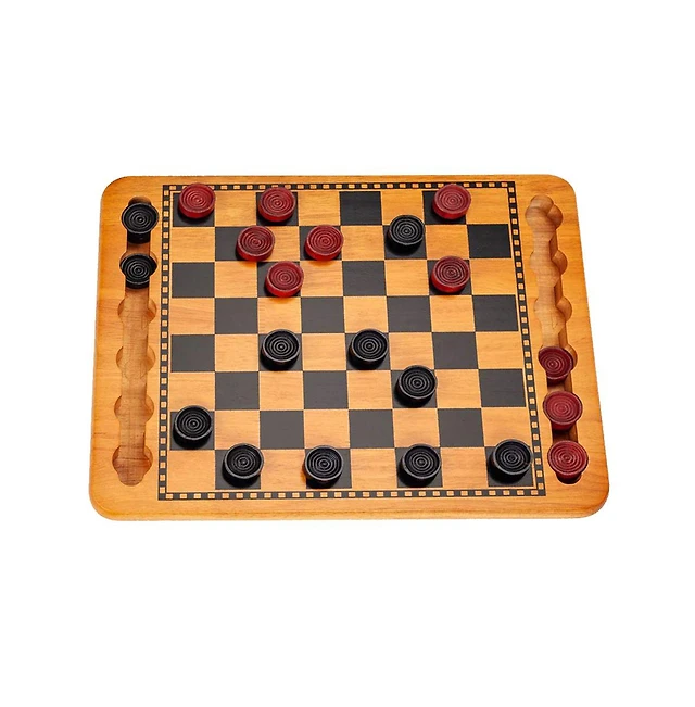 We Games 14 in. Red and Black Solid Wood Checkers Set, Grooves in Board