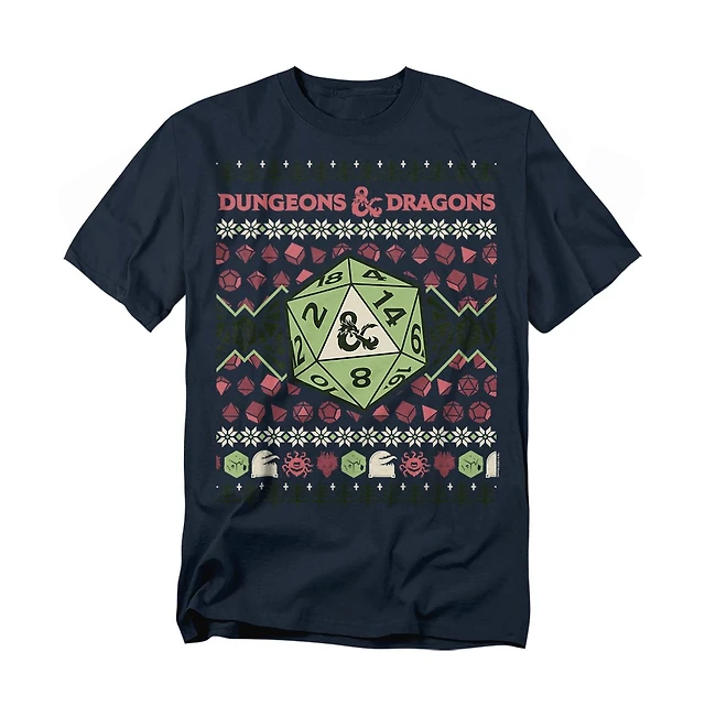 D&D Men's Dungeons And Dragons 20 Sided Dice Ugly Christmas T-Shirt
