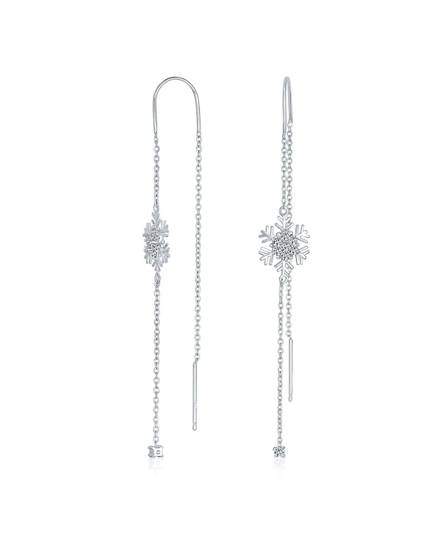 Bling Jewelry Thin Linear Clear Blue Cz Frozen Winter Holiday Party Snowflake Ear Threader Chain Dangle Earrings For Sterling Silver
