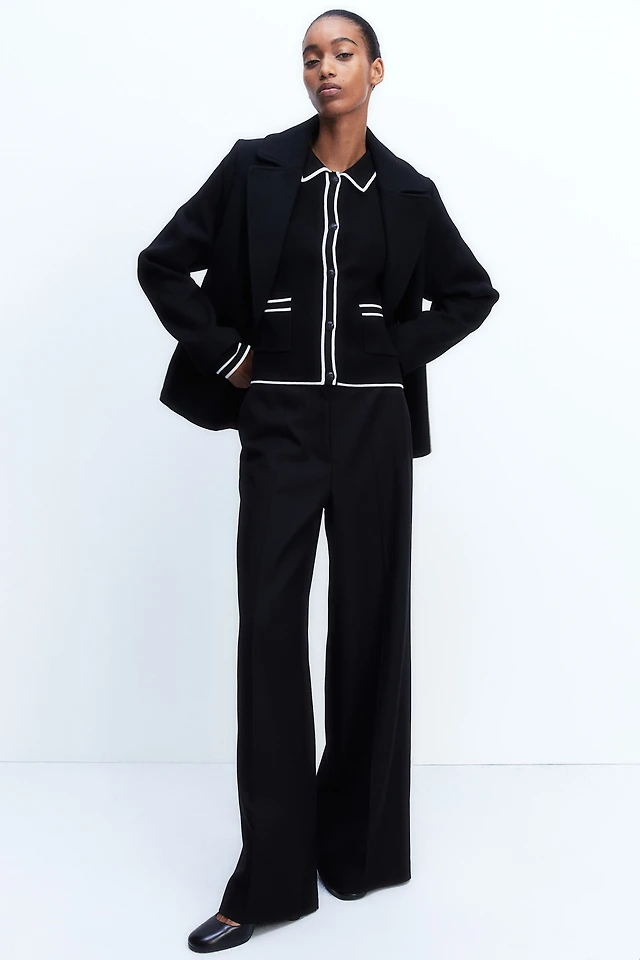 Rib-Knit Cardigan with Collar