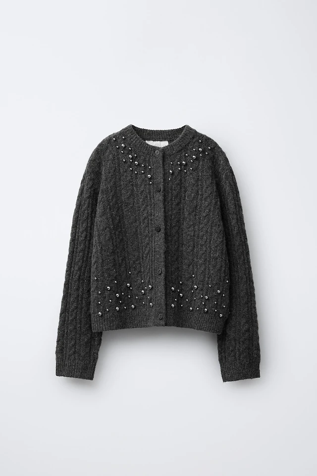 Fuzzy Pointelle Scalloped Crop Cardigan