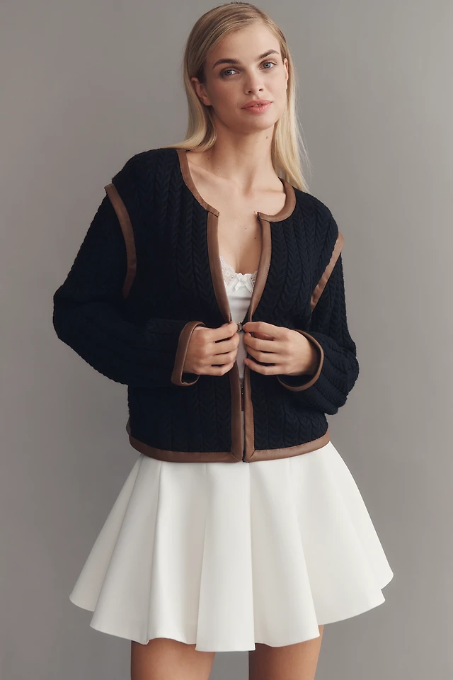 Dot and Lu Braided Sleeve Boxy Cardigan