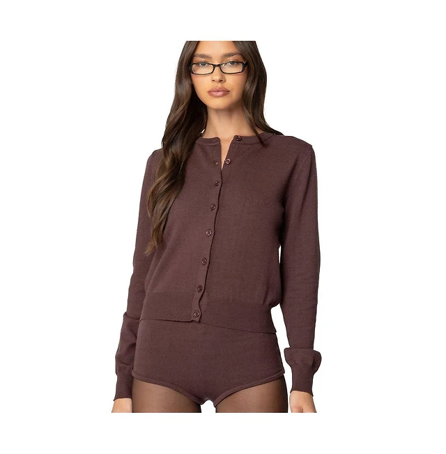 Edikted Womens Sammi Puff Sleeve Knit Cardigan