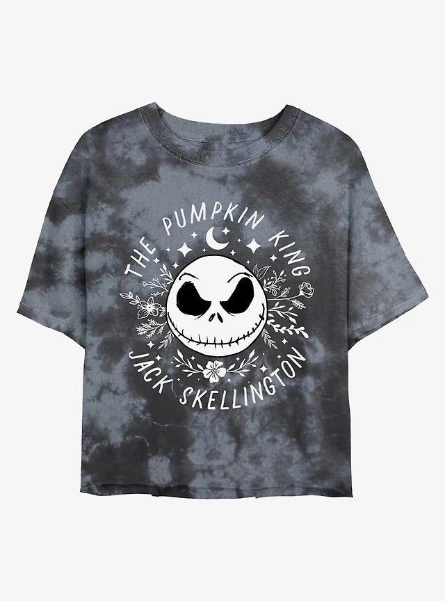 Disney The Nightmare Before Christmas Jack The Pumpkin King Skull Poster Tie-Dye Girls Crop T-Shirt