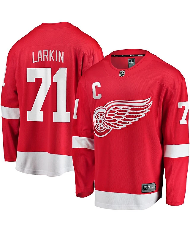 Fanatics Men's Dylan Larkin Red Detroit Wings Captain's Patch Centennial Authentic Stack Name Number T-Shirt