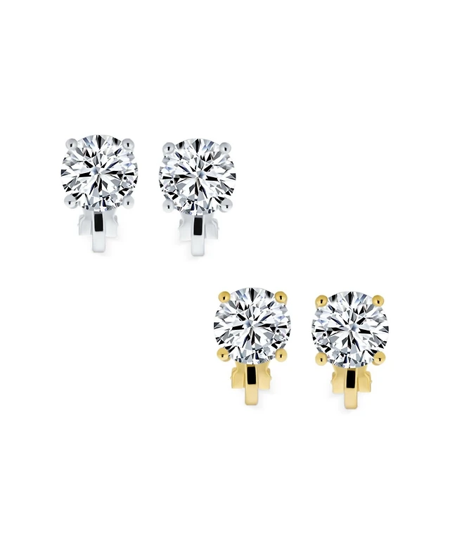 Bling Jewelry Set of 2 Multi Color Cz Clip-On Earrings Rose Gold Silver Plated For Non-Pierced